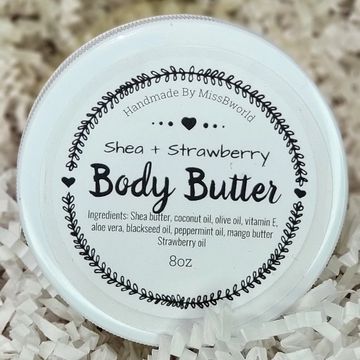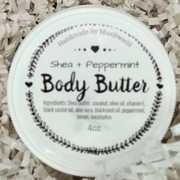 Whipped, ultra-moisturizing shea body butter made in small batches. Non-greasy, melts on contact, and locks in moisture all day. Available in 4oz and 8oz.